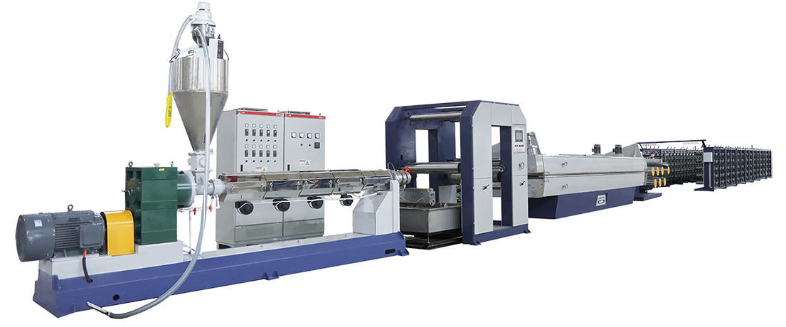 設備適用于生產(chǎn)聚丙烯(PP)新料,聚丙烯(PP)回料,以及生產(chǎn)新料與回料混合料。可用于草坪地毯的紗線,PP繩子等等。